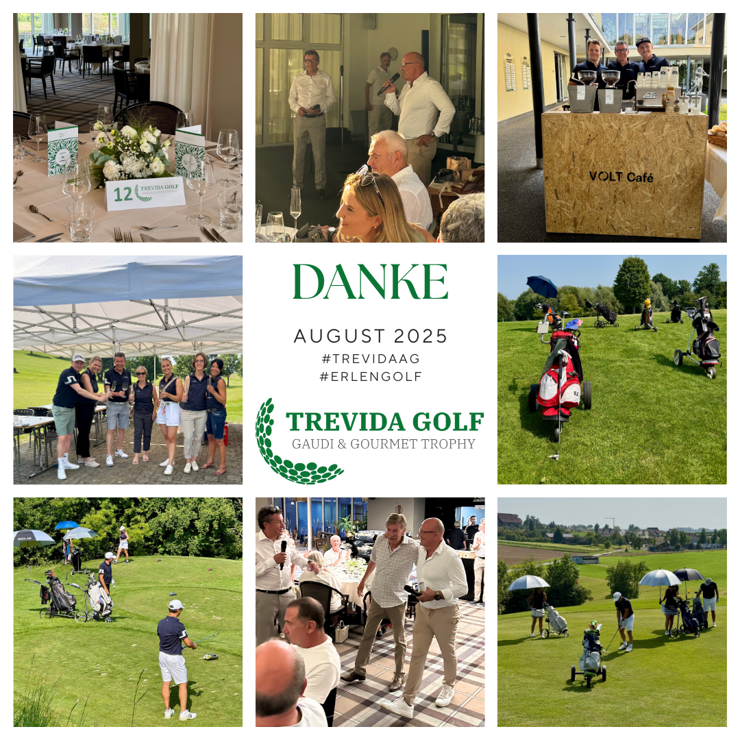 Unsere „trevida Golf Gaudi & Gourmet Trophy“ durften wir zum 15ten Mal bei strahlendem Sonnenschein auf dem Golfplatz Erlen mit 100 Golfern durchführen. Ein intensiver und genussreicher Tag, der in Erinnerung bleibt.