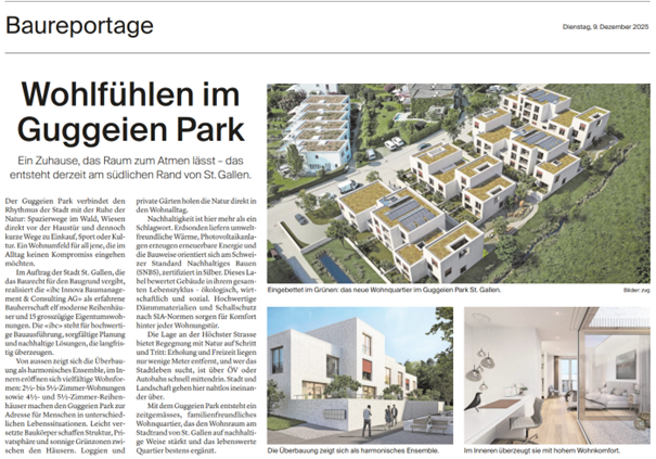 Im St. Galler Tagblatt und in der Thurgauer Zeitung vom 9. Dezember 2025 wurde eine spannende Baureportage vom Guggeien Park publiziert.